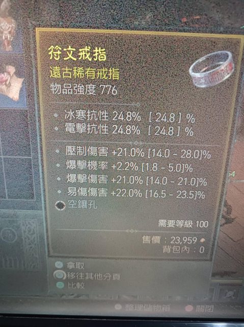 標題[競標] D4 近頂爆傷易傷 爆率壓制戒指