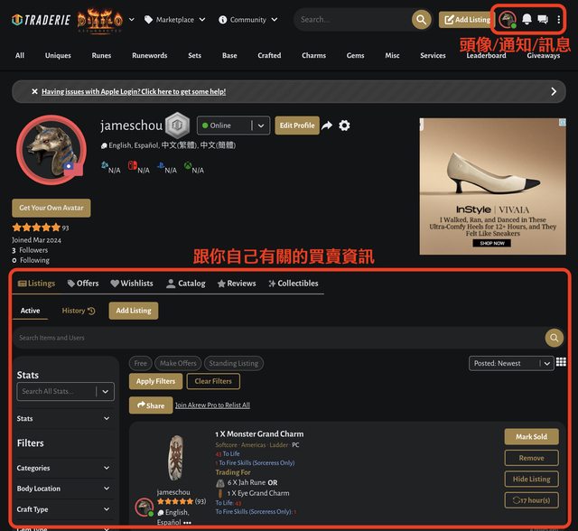 然後點最右上角的頭像 可以看到自己目前的一些買賣資訊