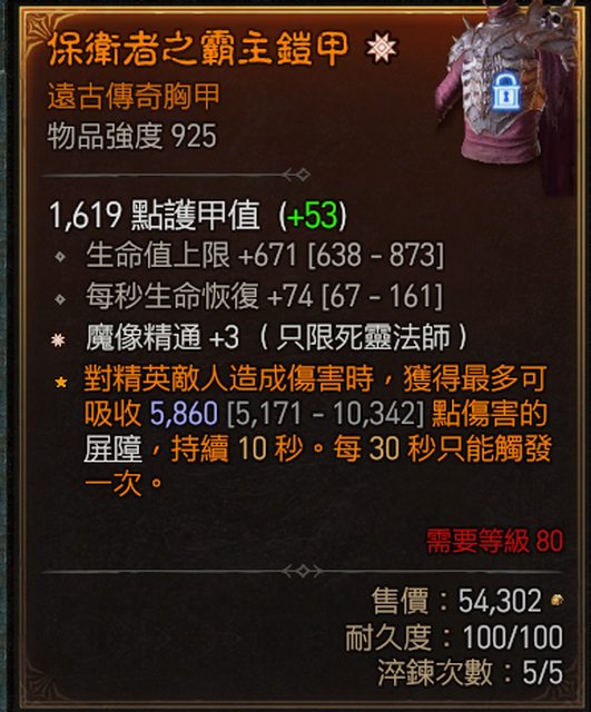 2. +3魔像精通,生命 胸甲 1.6E