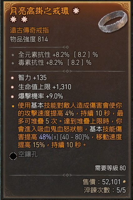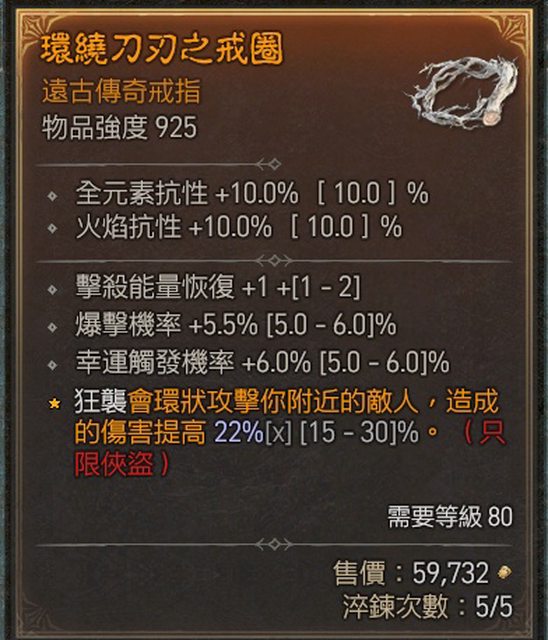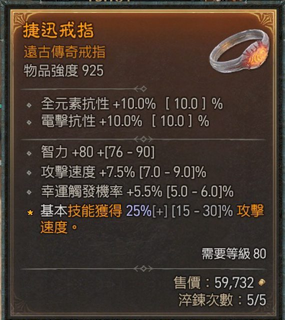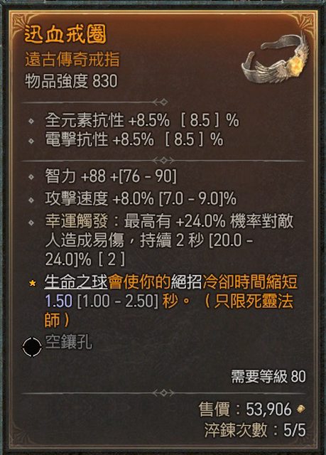 戒指區 遊俠幸運 幸運觸發易傷 爆率 攻速 4中2 300萬任選(全數售出) A: