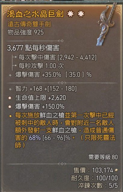 標題[競標] D4 S4 2太古雙手劍 智力+生命+爆傷