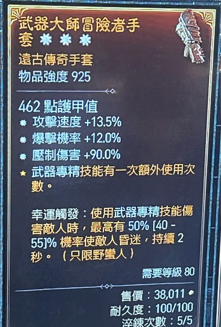 標題Re: [競標] D4 S4 三太古爆率攻速壓傷手套