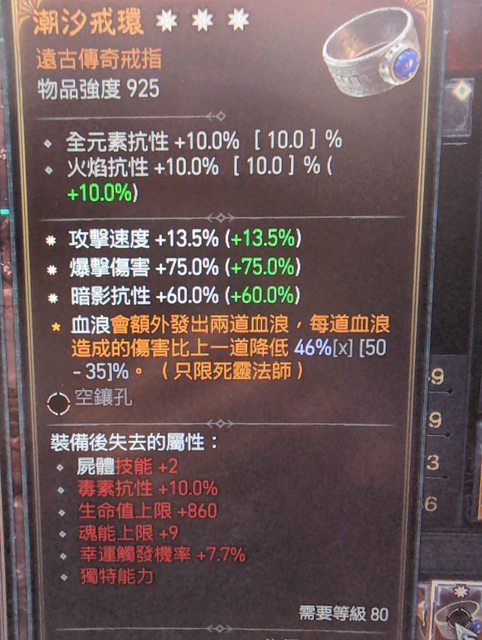 物 品:潮汐戒環 3星(攻速/爆傷/暗影抗)