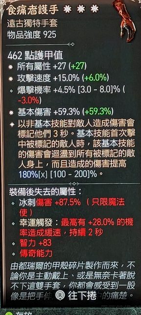 物 品:三太古 所有屬性/攻速/基本傷害 食痛者護手 特效180