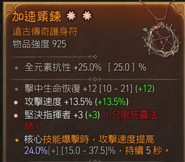 物品:雙太古項鍊(攻速 堅決指揮者)