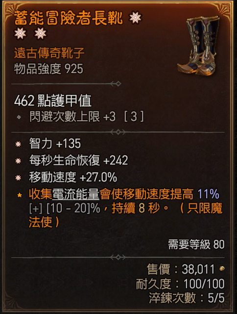 物品:三太古鞋(智力 跑速 回命)