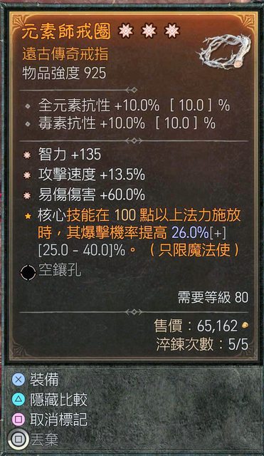 標題[競標] 三太古戒指 智力 攻速 易傷