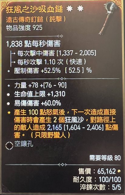 物 品: 雙太古單手槌(生命+易傷)