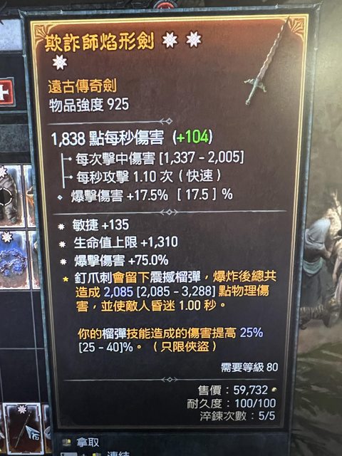 標題Re: [競標] D4 S4 三太古 敏 生命 爆傷 單手劍