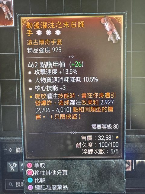 標題[競標] D4 S4 三太古手套 攻速 核心技能 降耗
