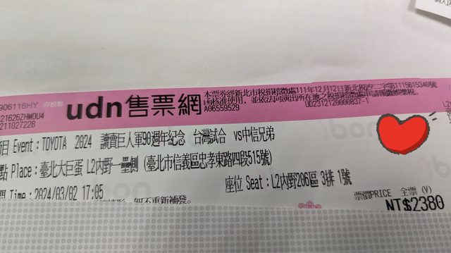 標題[售票] TOYOTA 2024 讀賣巨人 VS 中信兄弟