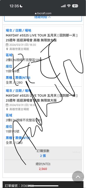 標題[售票] 五月天03/31 1280x2 E26區11排