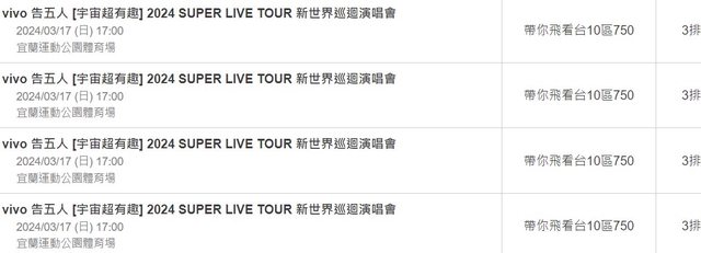 標題[售票] 【售】告五人週日10區3排750*4