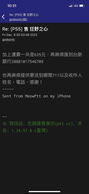 → a147asdf258: 等,他真的要匯款時總會開信看到有新 1.200.245.222 12/13 13:28