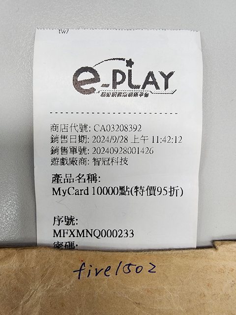 ★【物品名稱】:MyCard 10000點序號