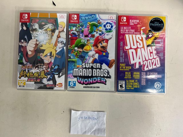 ★【物品名稱】:1.舞力全開2020 2.瑪莉歐驚奇 3.火影忍者終極風暴4 4.無雙蛇魔3U