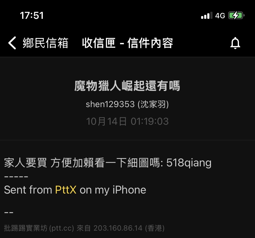 → fourleavesyu: 點就要被詐騙了... 114.26.144.223 10/18 16:30