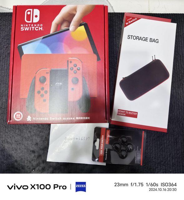 Switch主機亮麗紅+收納包+搖桿帽