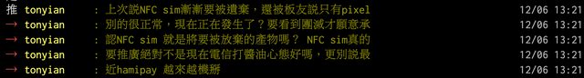 噓 petshopboys: 可憐阿 看來你根本不懂NFC SIM的原理172.255.125.169 02/27 06:09