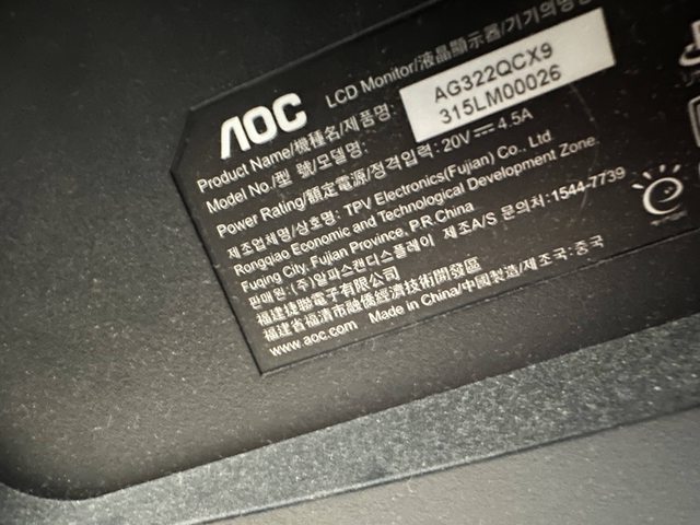 ◎硬體型號: AOC AG322QCX9