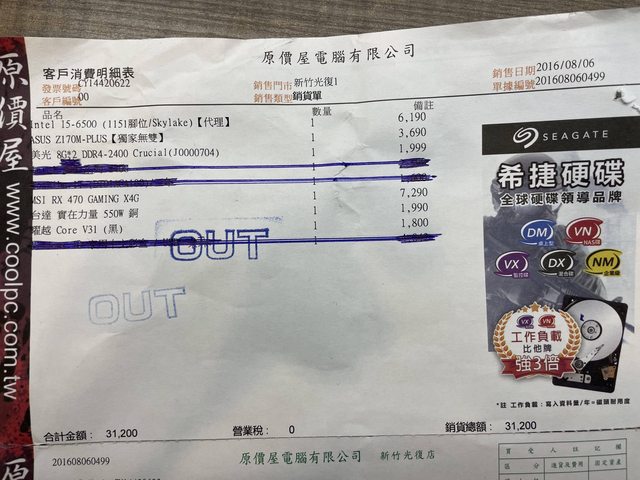 標題[賣/新竹/面交] i5-6500,rx470,8g*2