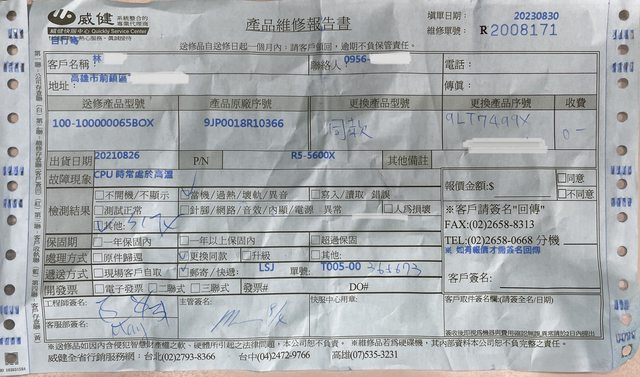 維修單據: