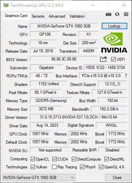 1. 技嘉 GeForce® GTX 1060 WINDFORCE OC 3G