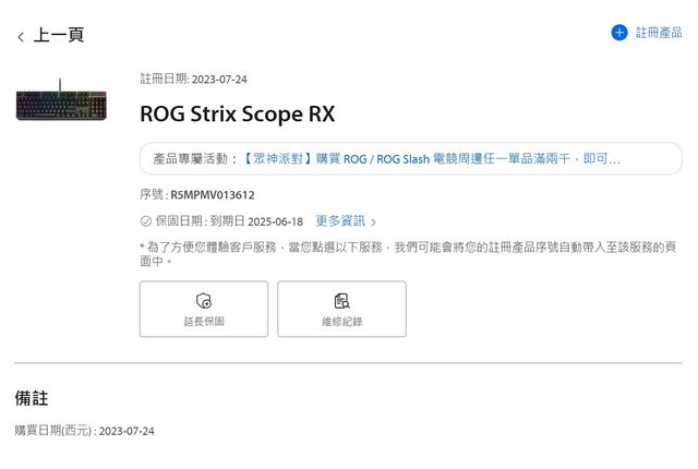 [1;33m◎硬體型號: (禁止販售未拆封之物品,贈品、獎品、RMA品、電腦相關線材及耗材除外) ROG STRIX SCOPE RX紅軸 PBT鍵帽