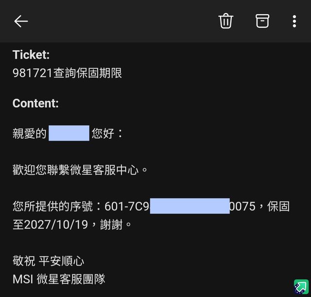 保至2027/10(PCIE槽返回時即有些許痕跡)