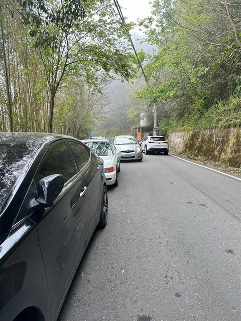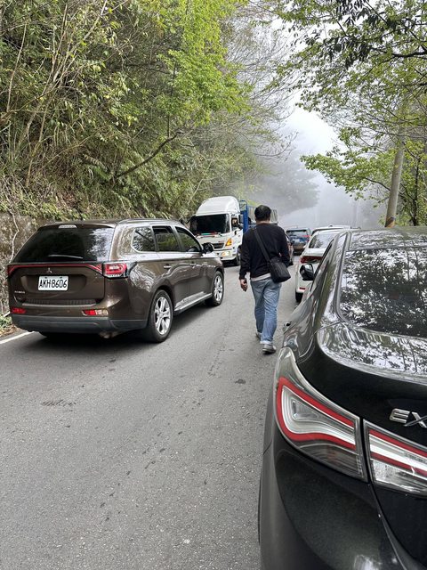汽車停放於宇老-馬美道路白線上並離開用餐