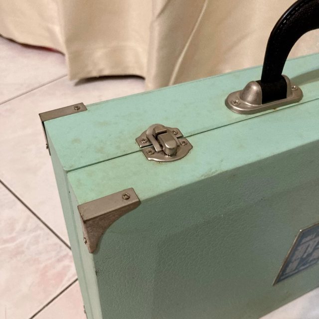 (已贈)7.硬殼提箱(需自取) 之前是放畢冊的,很堅固,有重量 表面有些許髒污,久放 38*9*(H)28(不含提把)公分