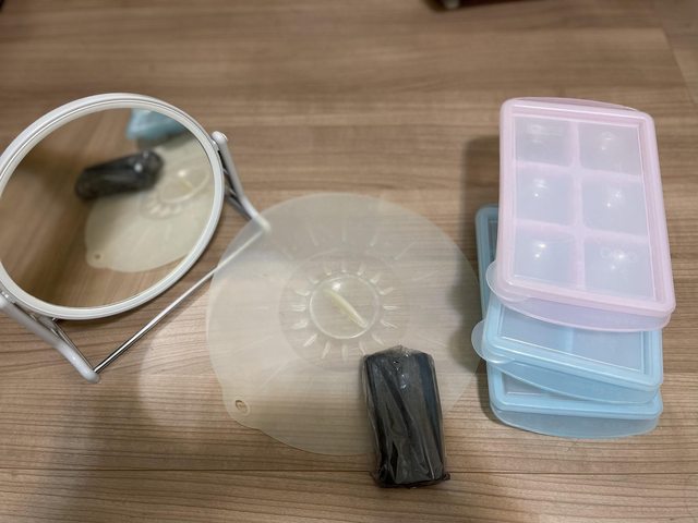 鏡子,矽膠碗盤蓋,淨水用備長炭,副食品盒(也可以當冰塊盒?)