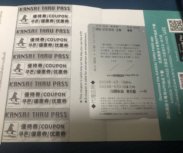 1.讓售品項:關西周遊卡KTP兩日券2張(兩張都已使用一日,使用期限到2024/05/31)