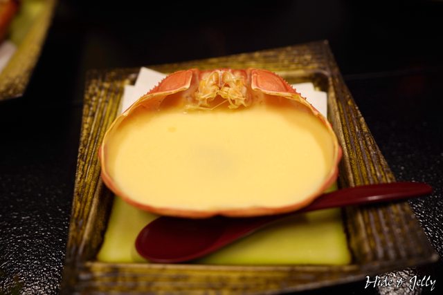 接著上來一道我們都很驚豔的料理「蟹甲羅茶碗蒸し」,利用蟹殼當作容器的茶碗蒸,可