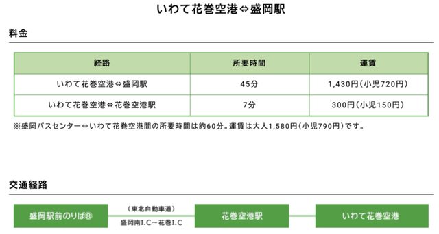花卷機場-盛岡車站 巴士費用、時間