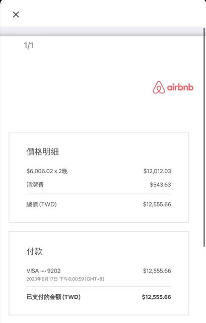兩晚12555.66台幣。