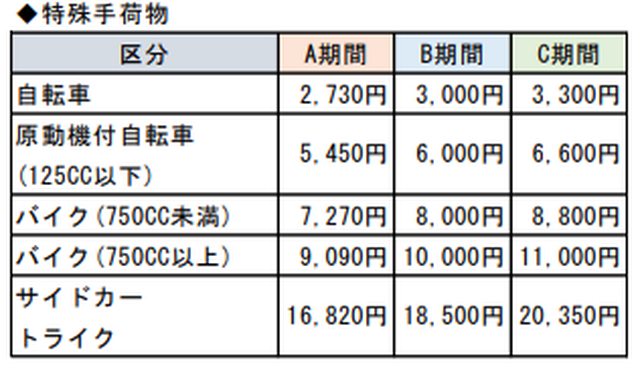 也可以載運汽機車或自行車,費用如下:
