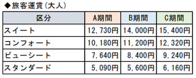 依搭乘時間分為A、B、C三個期間
