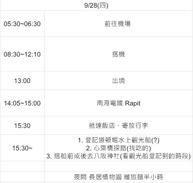 1. 出遊日期: 9/28-10/3