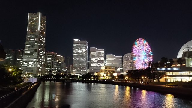 摩天輪看到的夜景也很漂亮,整個橫濱就像是星海一樣沉浸在裡面,只是拍起來的風景不
