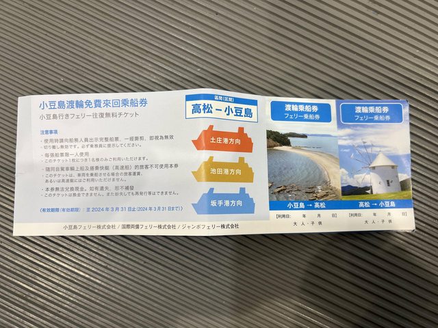標題[贈送] 小豆島渡輪免費來回乘船券