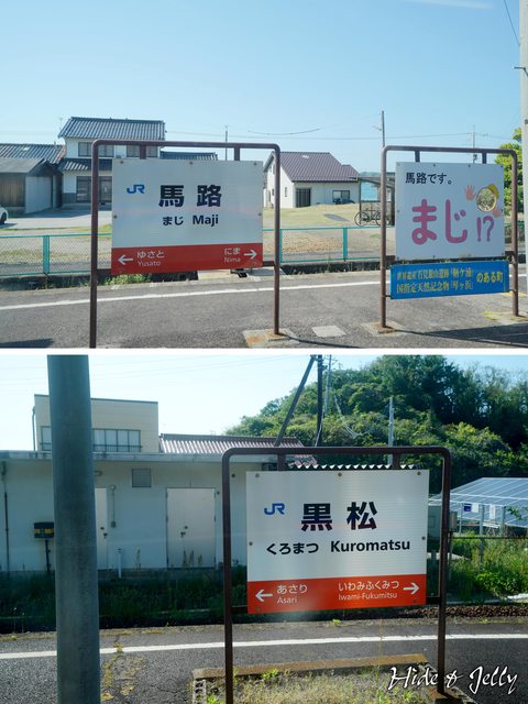 段真的很美,途中也有許多有趣的車站,像是上圖的「馬路」,日文發音是「まじ」(與
