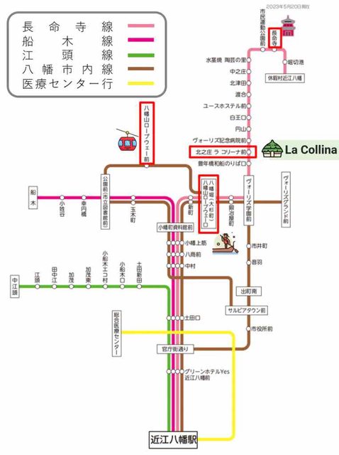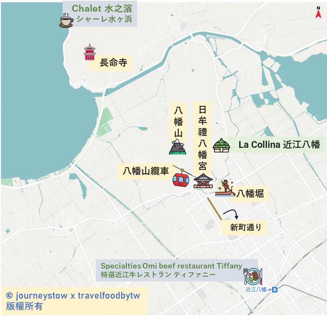 市風光,可以坐"八幡山纜車"一覽琵琶湖的美景,還能到網紅熱門景點" La Colina近江