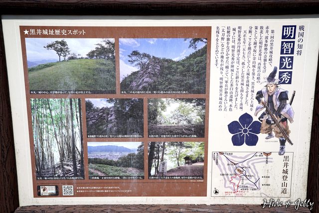 看板中的照片與我們看到的黑井城山頂部的地貌似乎略有不同,尤其是本丸下方的那條路