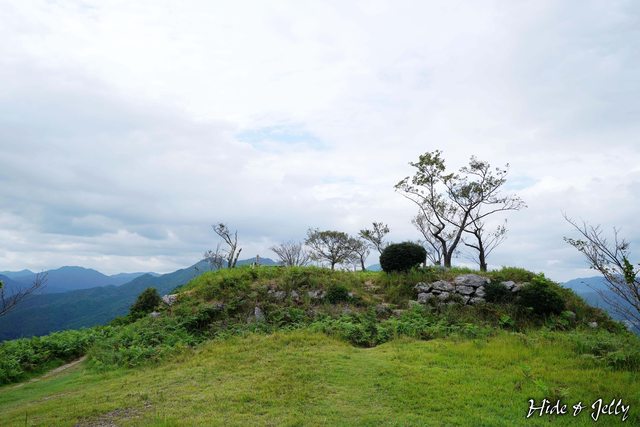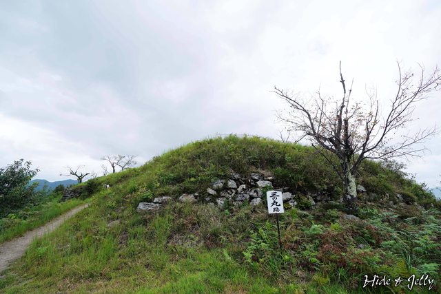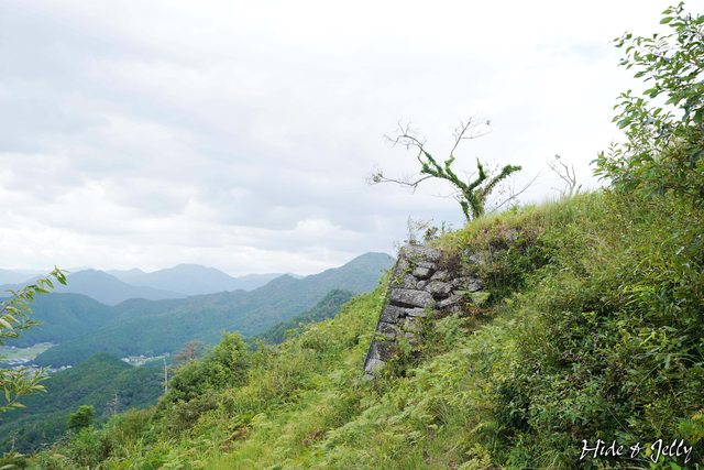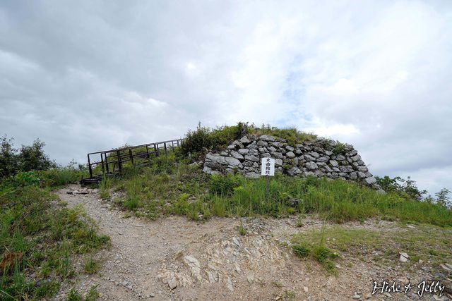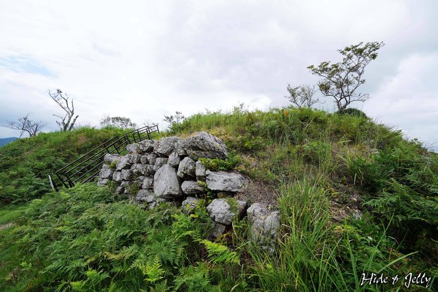 登上山頂部後,第一個看到的是「東曲輪跡」,遺留一處曾有隅櫓存在的石垣,石垣堆積
