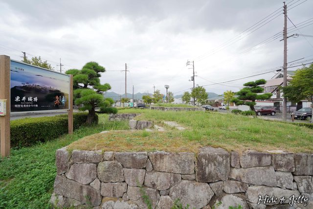 回到黑井駅前,發現車站正面就有一塊石垣的造景,擺放著黑井城的空拍照片,因為我們