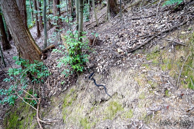 這時一旁突然出現咻咻的聲音,居然一條大黑蛇從我們的身邊鑽走,天啊有蛇!還好沒有