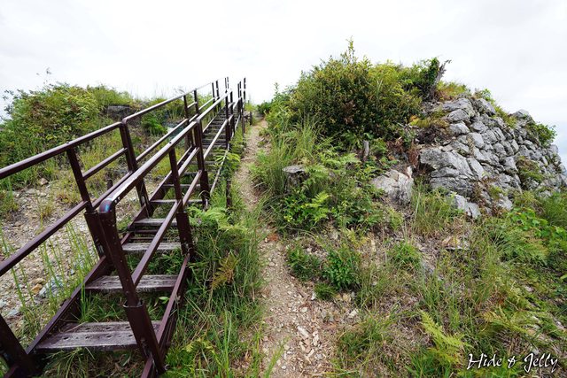 穿過防獸網後,看到一段蠻高的樓梯,如果一開始想走急坂登城,說不定看到這段樓梯就