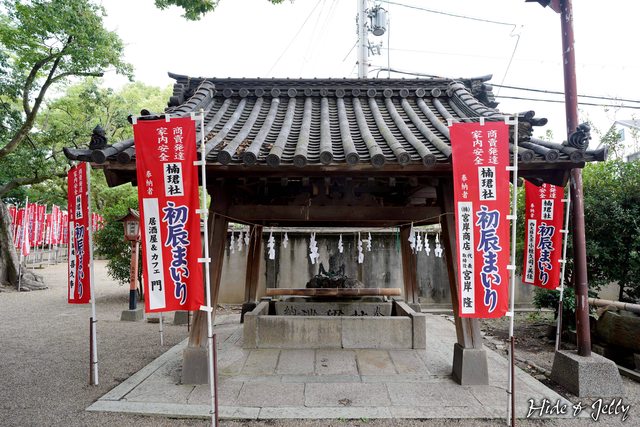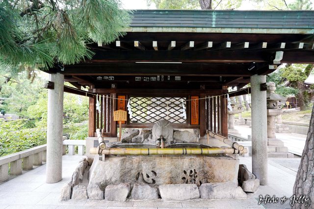 神木的對面,就是住吉大社的手水舍,手水舍的作法與一般神社無不同,中間留出水的是