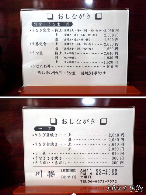 川勝的菜單相當簡單,就是蒲燒鰻魚一味,但依據分量分成並、上、特、特上,還可以選